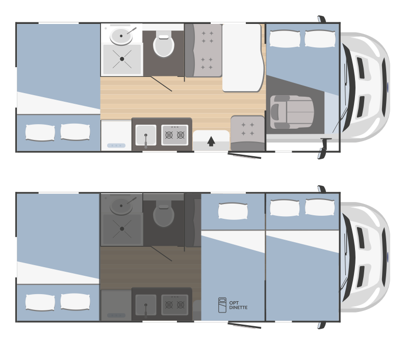 | Liczba łóżek | 2 os. + 2 os. (opcja) + 2 os. (opcja) |