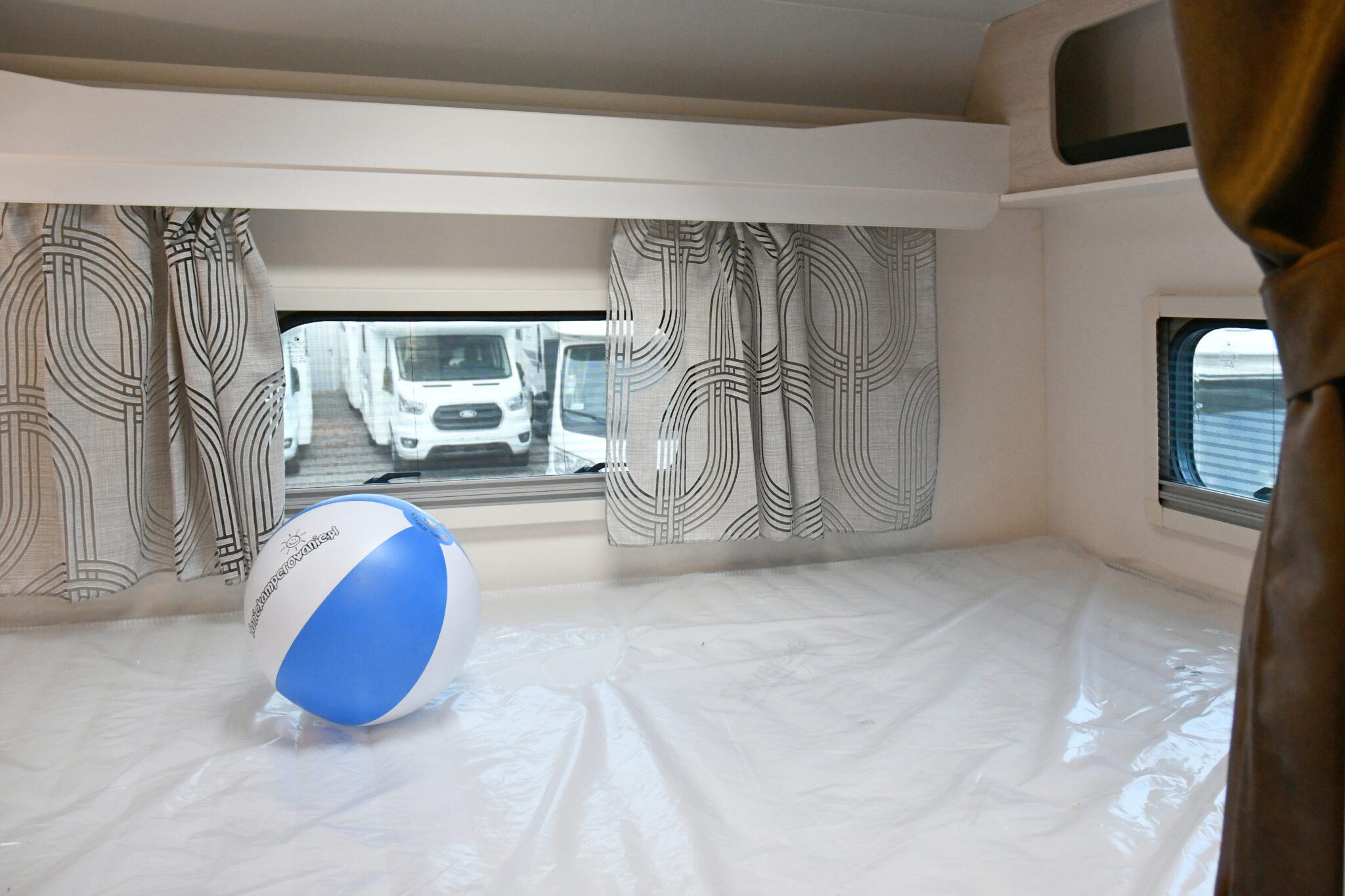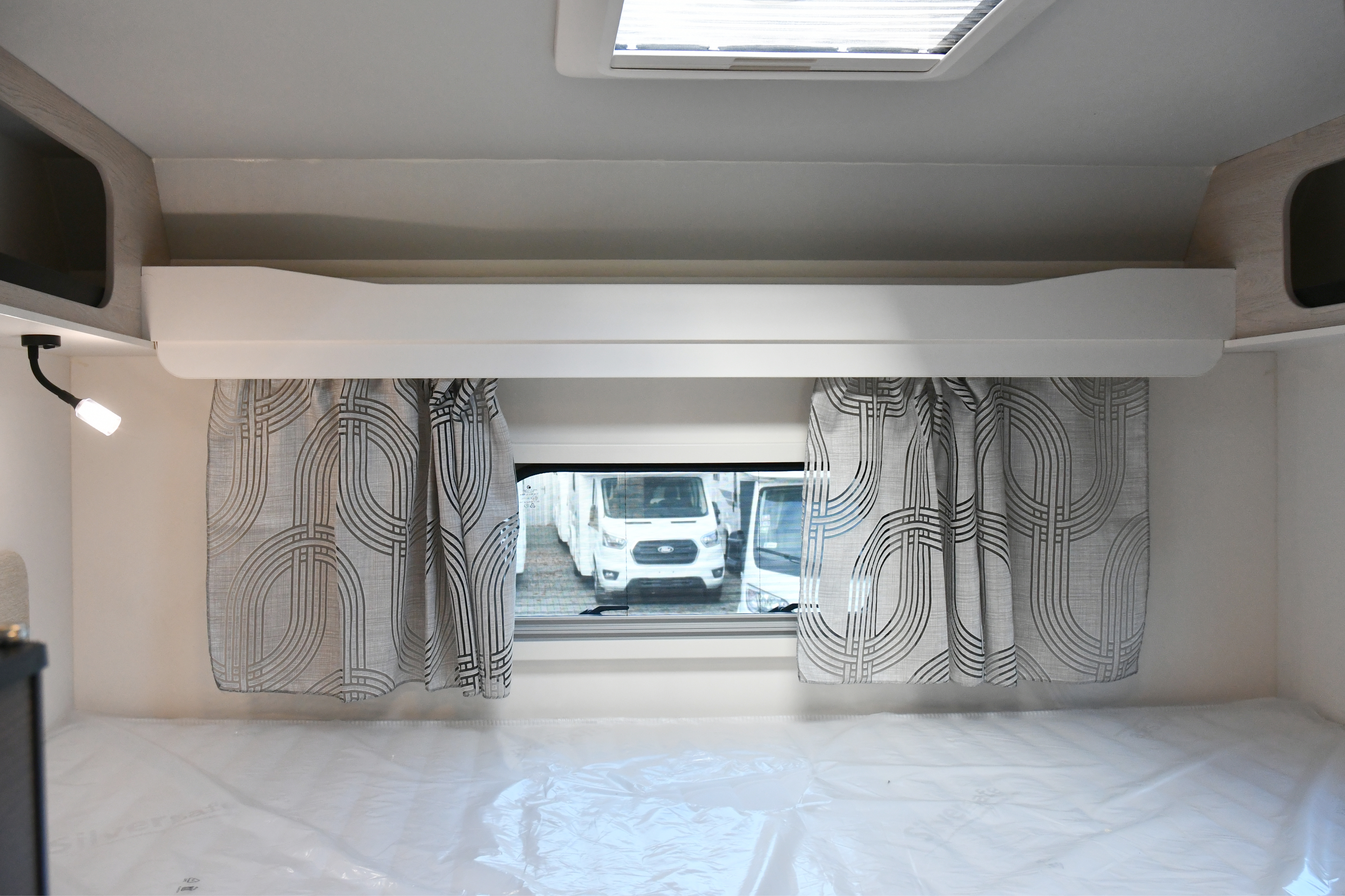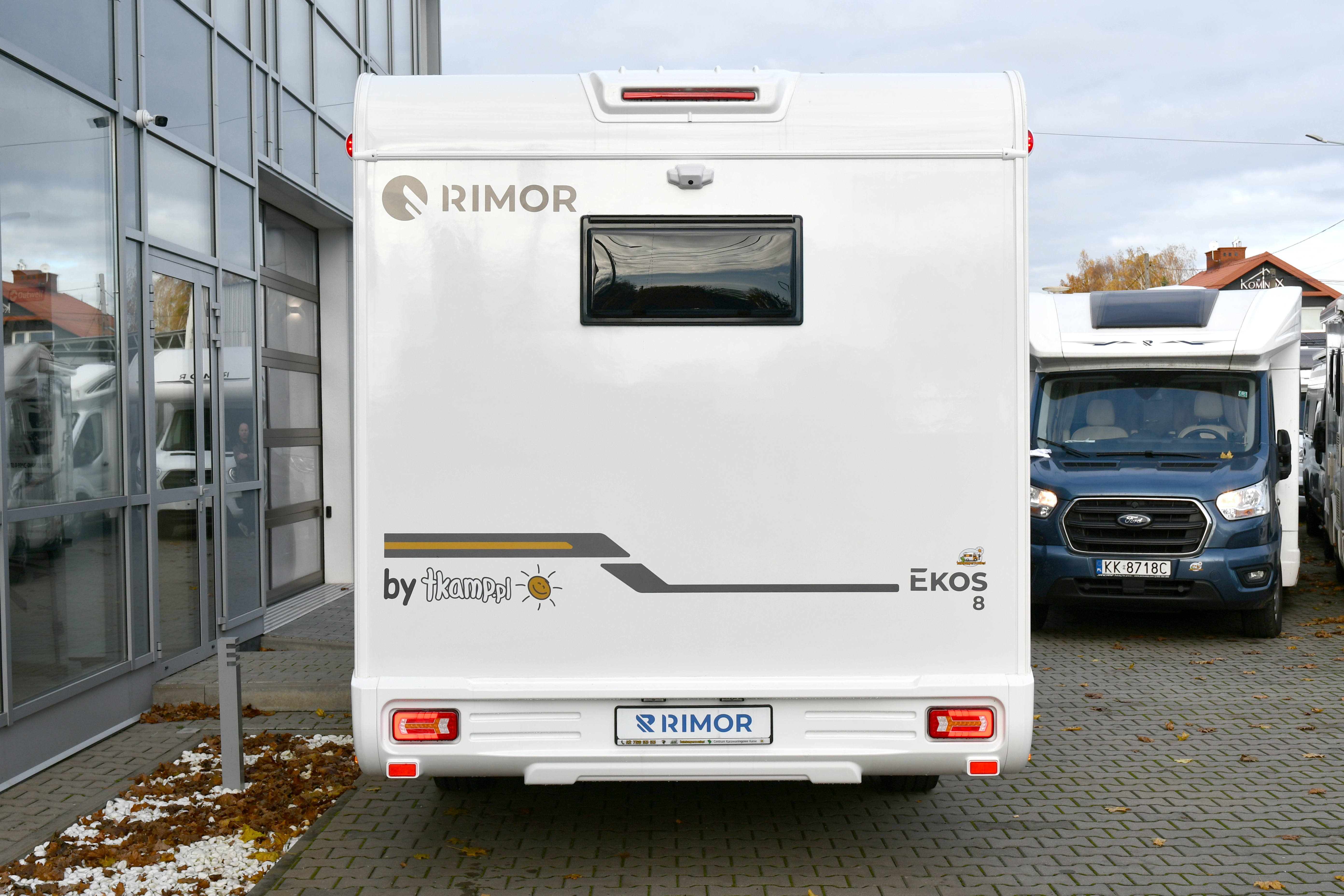 EKOS 12 P to kompaktowa półintegra o długości 6455 mm, zaprojektowana z myślą o maksymalnym komforcie przy zachowaniu niewielkich gabarytów. W tylnej, lewej części zabudowy znajduje się wygodne łóżko francuskie, które docenią zarówno osoby ceniące łatwy dostęp do strefy sypialnej, jak i seniorzy – bez konieczności korzystania z drabinki.