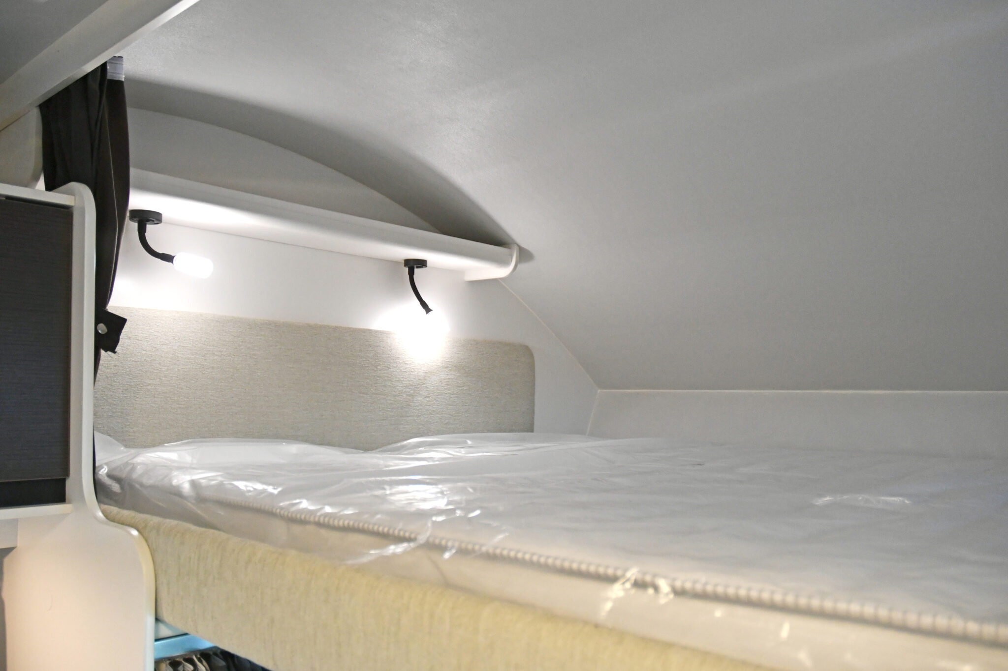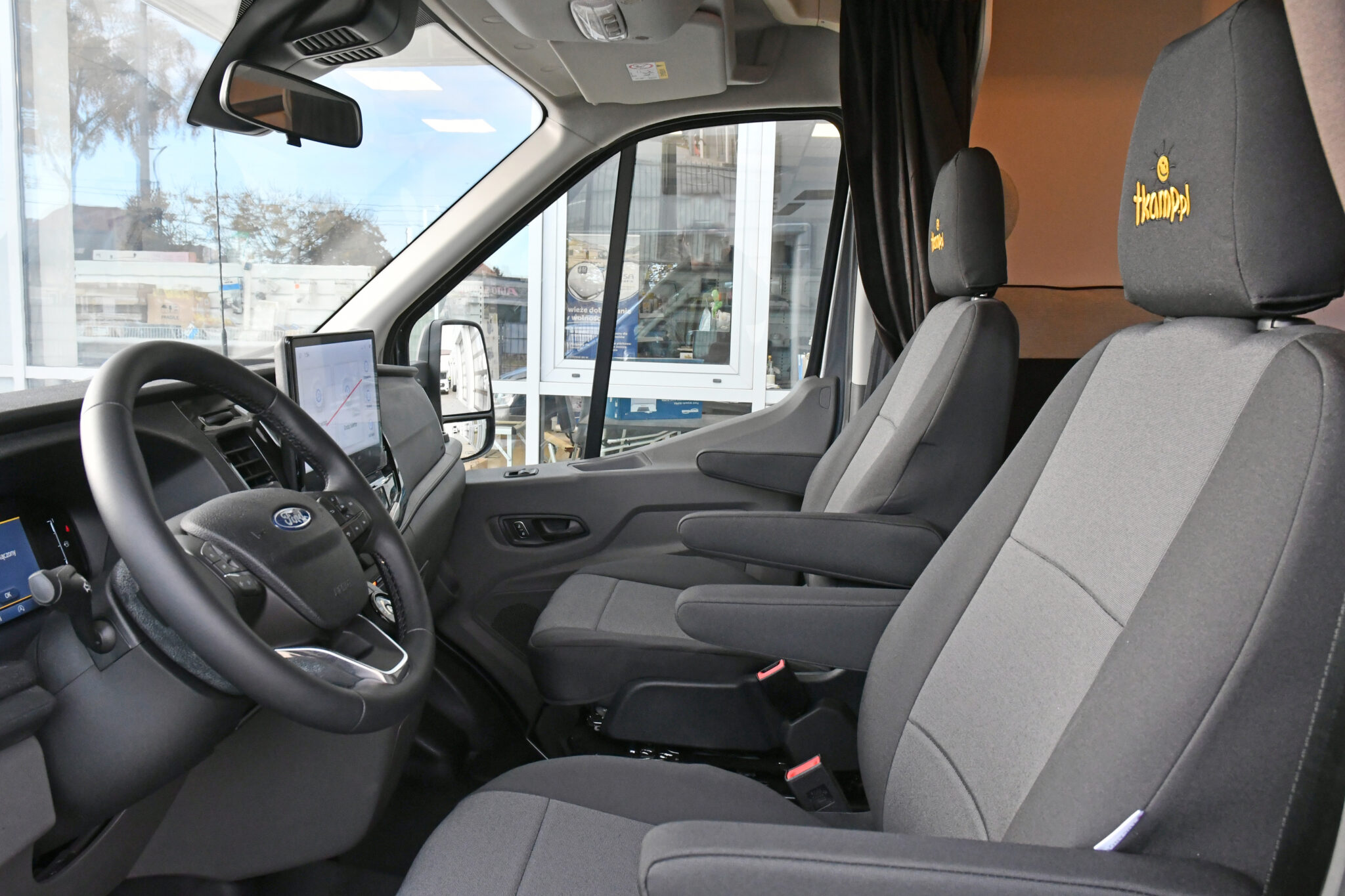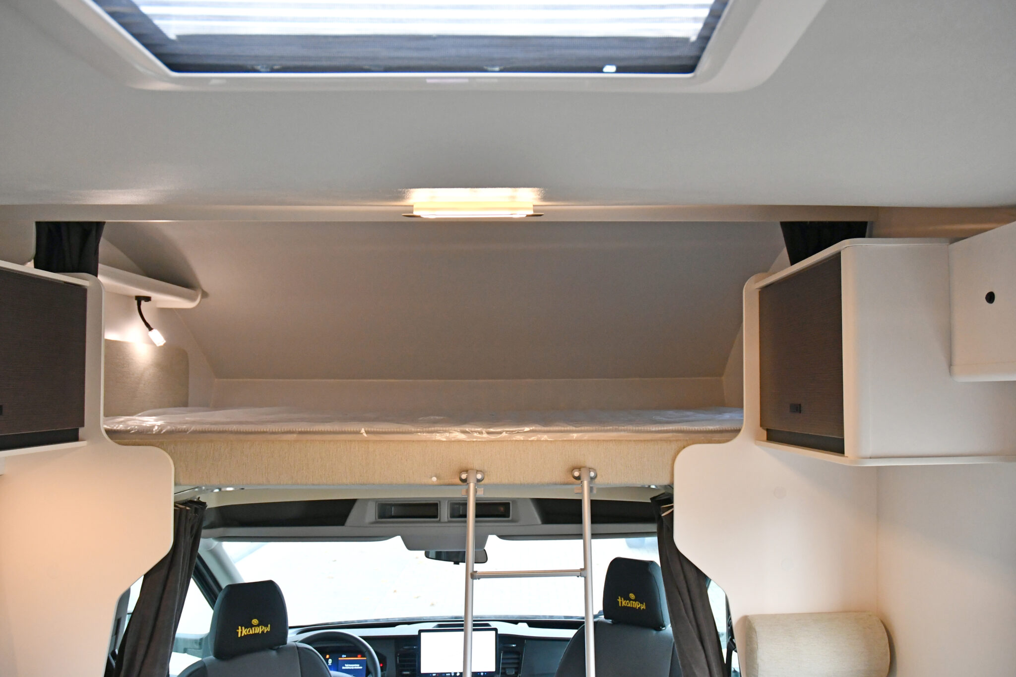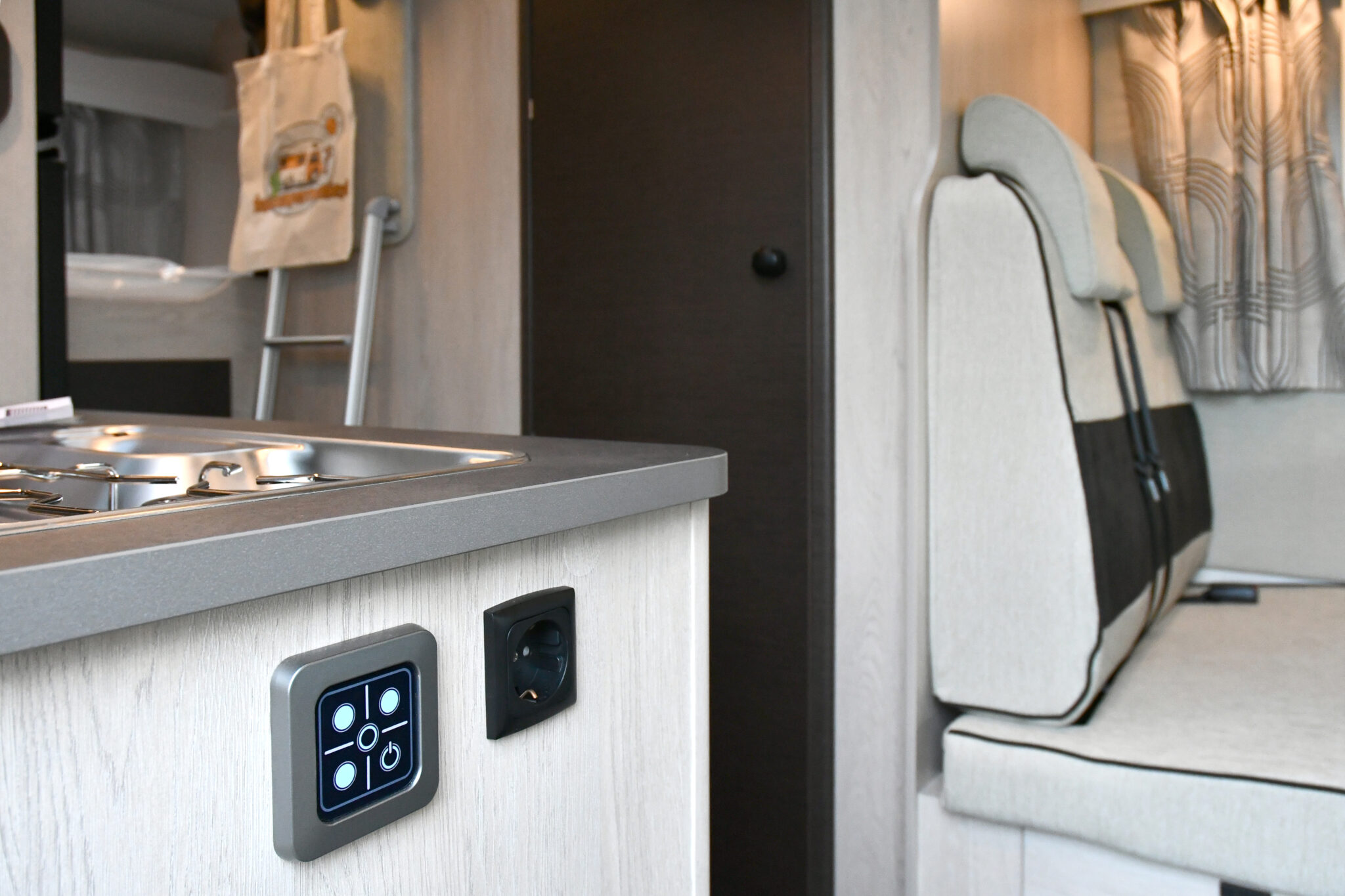 Pomimo swoich kompaktowych rozmiarów, kamper w wersji z opcjonalnym łóżkiem w salonie może komfortowo pomieścić nawet sześcioosobową załogę. Wnętrze wyróżnia się przemyślanym układem oraz funkcjonalnością. Centralnym punktem salonu jest obszerny stół, przy którym znajdują się dwie dwuosobowe kanapy, zapewniające wygodne miejsce do wspólnych posiłków i wypoczynku.