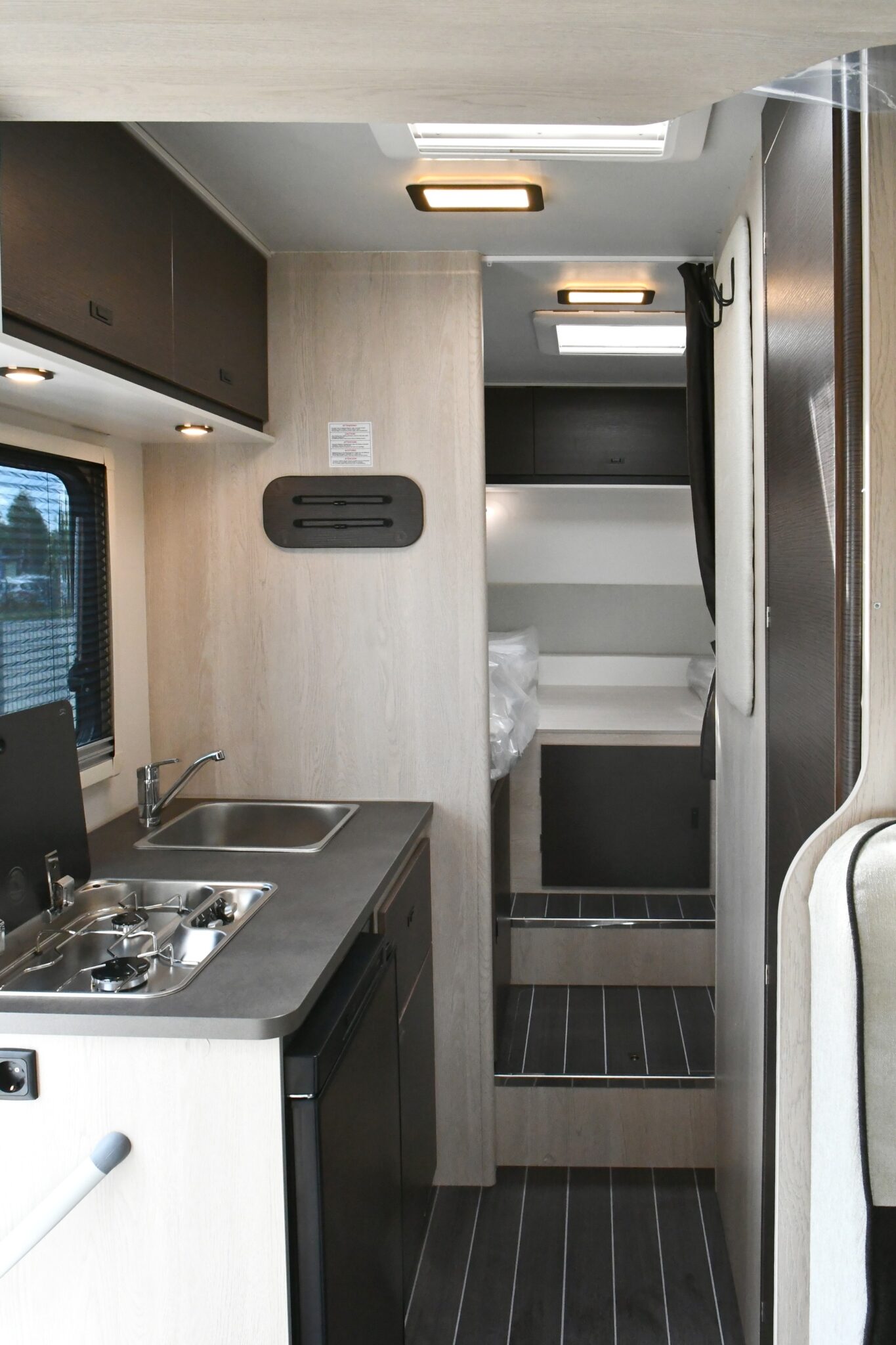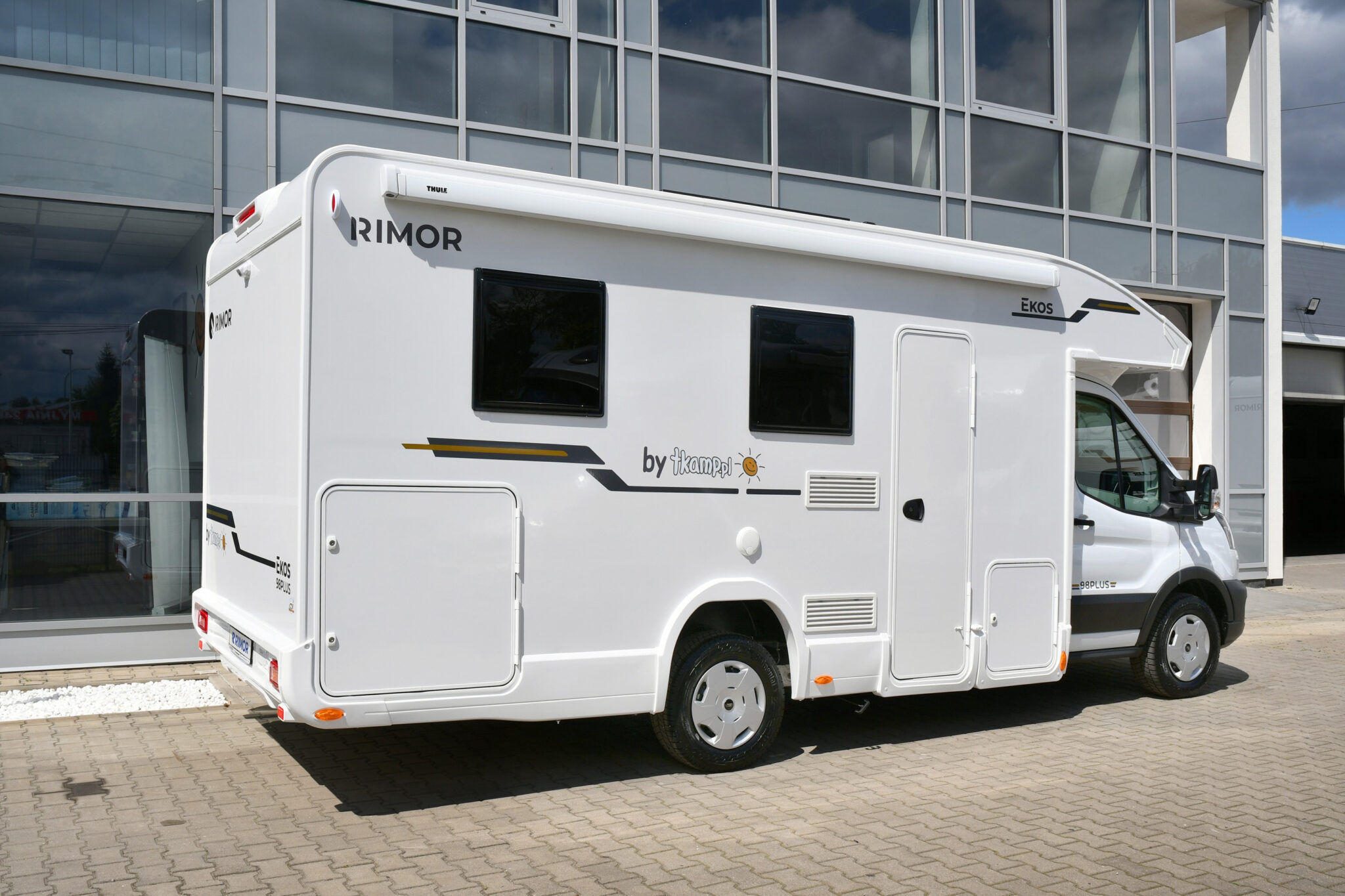 EKOS 12 to krótka (6455mm) półintegra z łóżkiem francuskim. Pomimo niewielkich rozmiarów pomieści aż 6 osób. Na pokładzie są trzy pełnowartościowe dwuosobowe łóżka, obszerny stół z dwuosobowymi kanapami po obu jego stronach, aneks kuchenny z lodówką, zlewozmywakiem i kuchenką gazową oraz dużo miejsca na przygotowanie posiłku, blat jest naprawdę funkcjonalny. Dodatkowo we wnętrzu zaprojektowano szafę z uchwytem na wieszaki, miejsce na telewizor oraz mnóstwo różnego rodzaju półeczek i schowków. Toaleta posiada oddzielny prysznic.